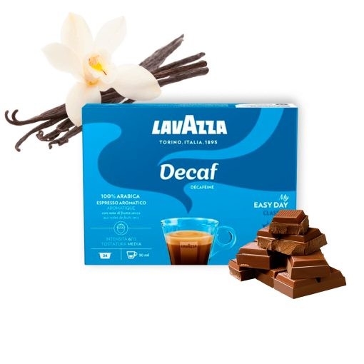 Кафето Lavazza Decaf е идеално за всеки момент от деня. Кафе без кофеин, получено по естествен метод с използване на качествата на въглеродния диоксид, който запазва аромата и емблематичния вкус на Lavazza, за изключително изживяване, по всяко време и във всеки момент.